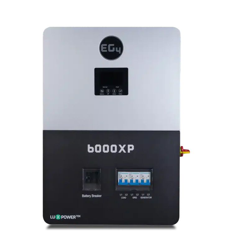 | • | The EG4 6000XP delivers 6,000W of split-phase power with up to 8,000W PV input, ideal for grid-tied and off-grid energy systems. Featuring dual MPPTs, built-in breakers, a 15–30ms UPS transfer switch, and remote monitoring, it ensures seamless and efficient performance. Lightweight and transformer-free, it supports smart load control, AC coupling, and peak shaving to reduce energy costs while providing reliable backup power. |