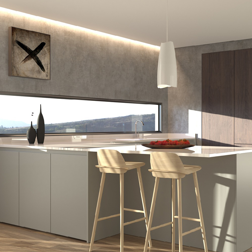 Kitchen Islands and Dining Tables: For lighting and removing cooking odors and mold.