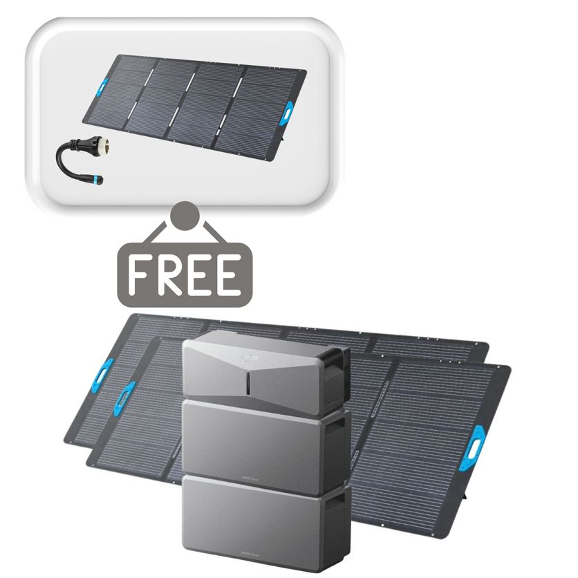 Anker SOLIX E10 Smart Home Backup System with Expansion Battery - 12kWh and 2x 400W Solar Panel - With Free 400W Panel Power Strip and AC Generator Cable