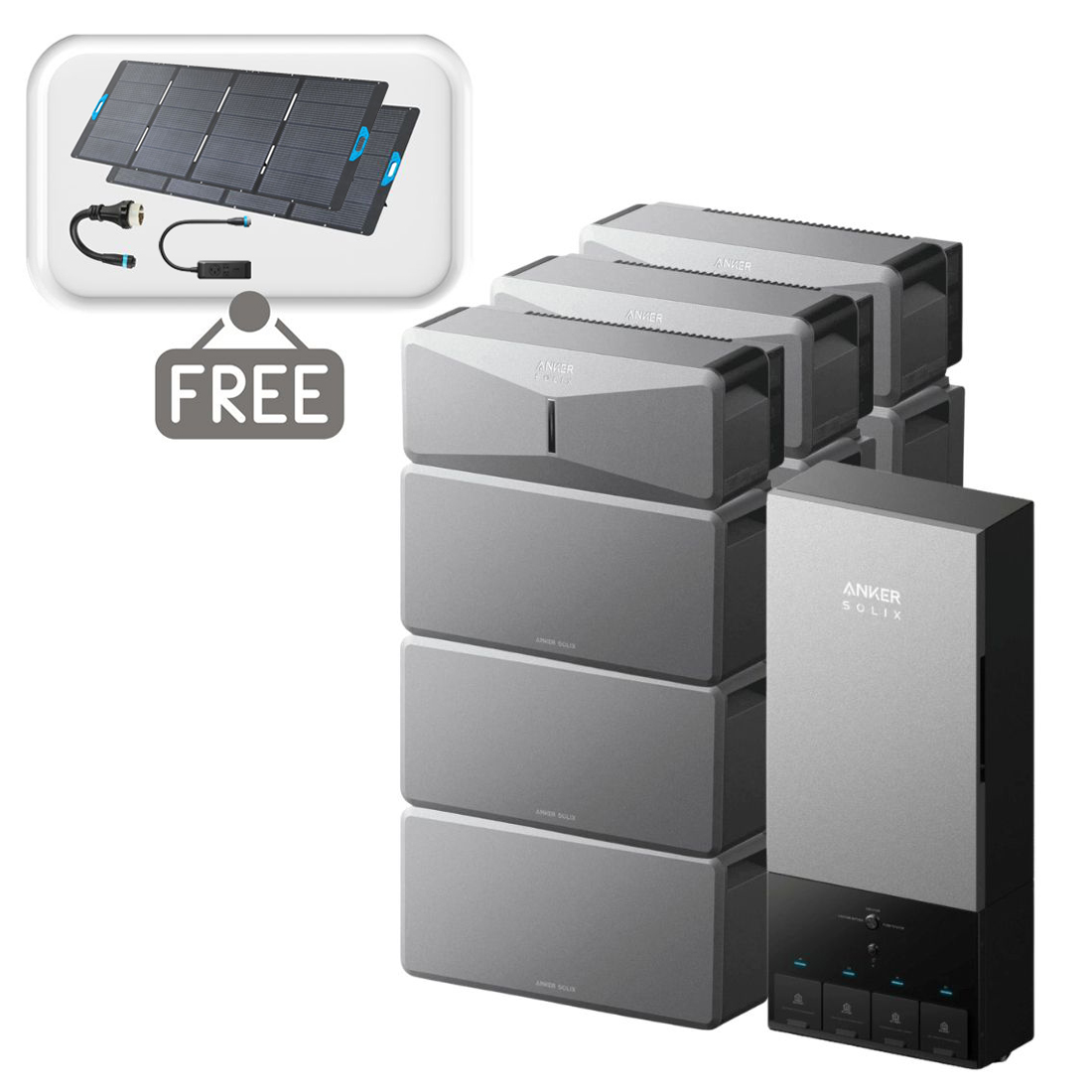 HomeSolar Panels & GeneratorsAll Solar Panels & Generators3x Anker SOLIX E10 Home Backup Systems with 3x Extra Expansion Batteries and Power Dock Kit - 36kWh - With 2x Free 400W Panels, Power Strip and AC Generator Cable