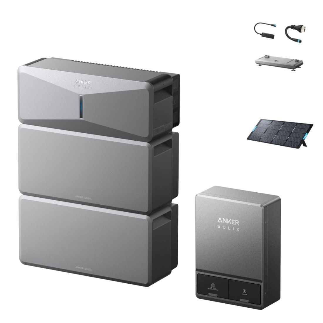Anker SOLIX E10 Smart Home Backup System with 2x Expansion Batteries - 12288Wh - With Free 400W Panel, Power Strip, Metal Pad and AC Generator Cable