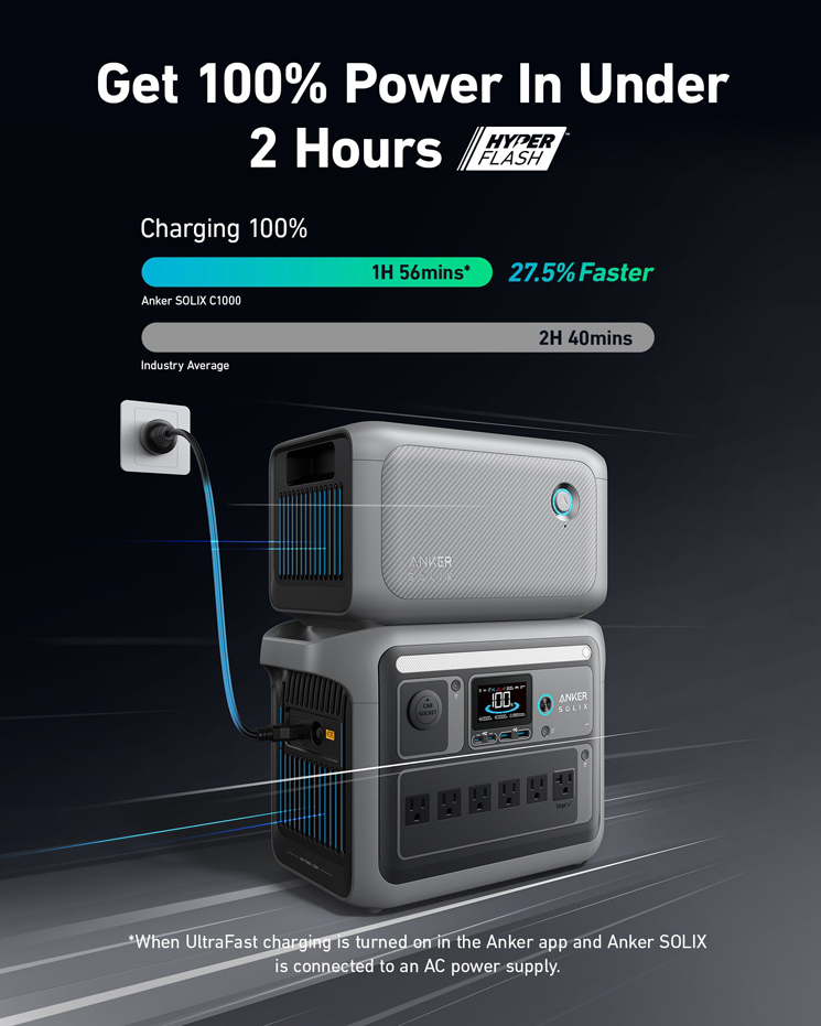 | • | Instead of the average 2 years, the Anker SOLIX C1000X Portable Power Station is designed to reliably power your devices every day for 10 years. Additionally, it offers a superior 5-year full-device warranty for a guaranteed, worry-free experience. |
