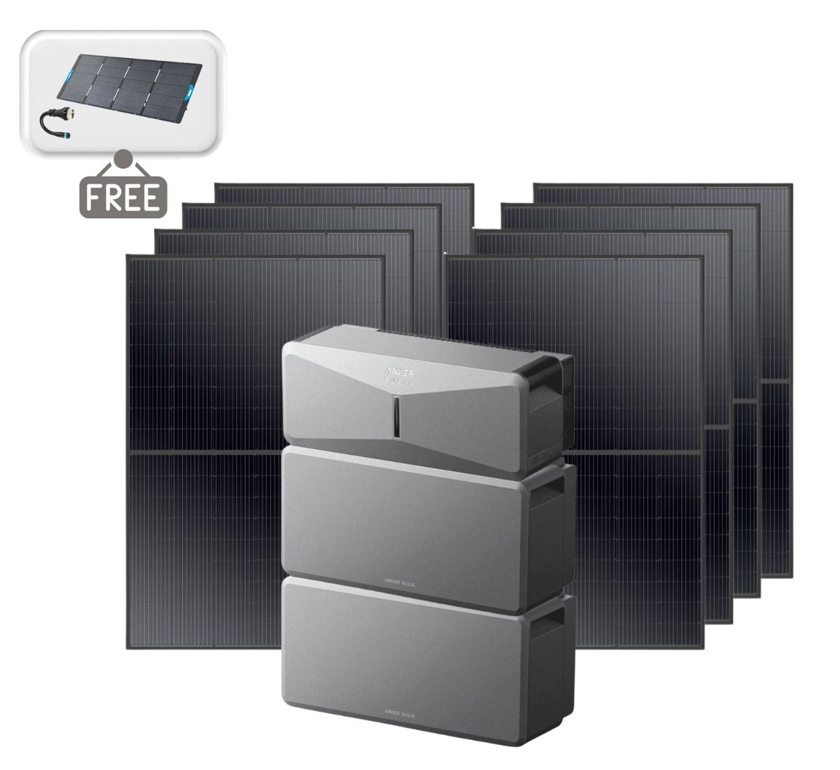 Anker SOLIX E10 Smart Home Solar Backup with 2x Expansion Batteries - 12kWh and 3200 Watts of Solar - With Free 400W Panel Power Strip and AC Generator Cable