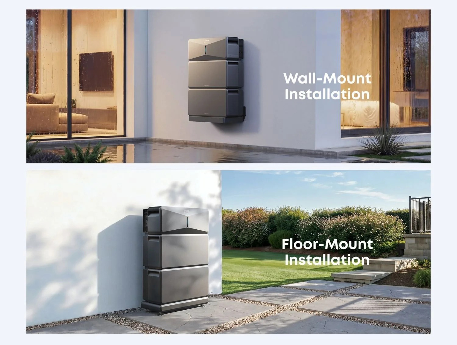 | • | Wall Mount: In flood-prone or coastal areas, wall mounting keeps your system elevated and protected. |