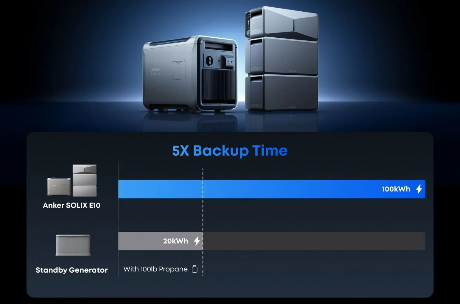 | • | The Anker SOLIX E10 grows with your needs—up to 30kWh per unit, expandable to 90kWh total capacity. |