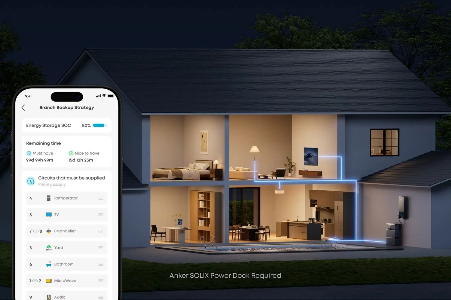 | • | E10 with Power Dock intelligently manages up to 12 home circuits. Customize your backup strategy in the app: choose which circuits are must-haves versus nice-to-haves. During short outages, E10 powers everything. |