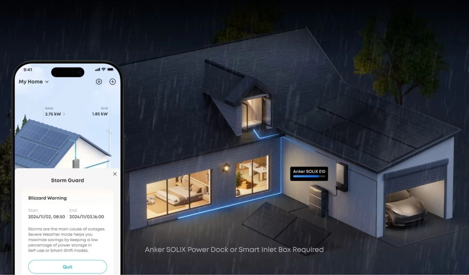 | • | E10 proactively monitors severe weather and charges itself to full capacity using solar and grid power-so you don't have to. When outages strike, timely power level reminders keep you informed, ensuring you're prepared for anything the storm throws your way. |