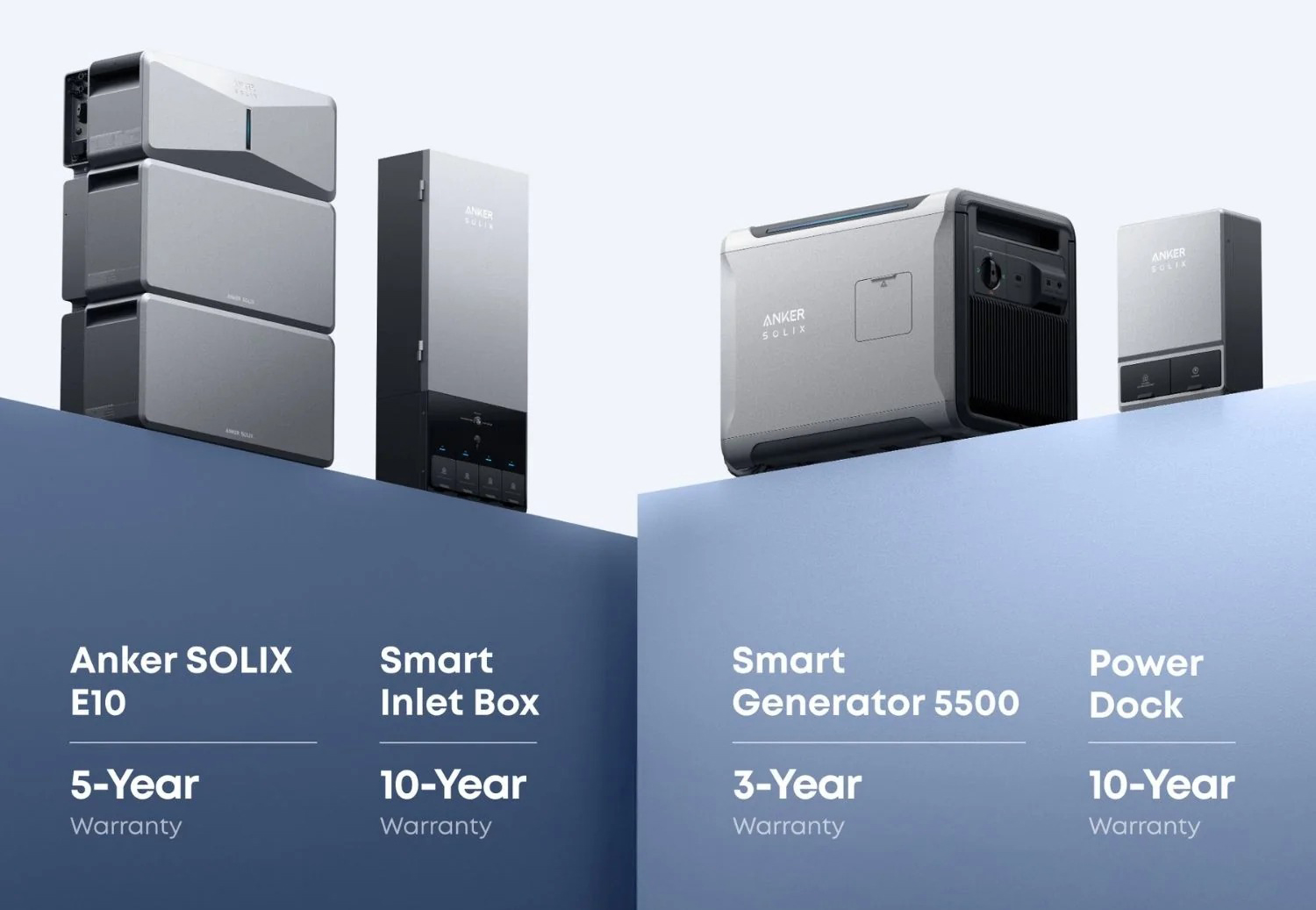 The Anker SOLIX E10 is the world's first Smart Hybrid Home Backup System uniting battery, solar and a smart generator to keep your home always powered with ease. Featuring battery expansion from 6Wh to 90kWh, a solar input from 9kW to 27kW and a output surge from 37kW to 66kW with dual E10 units. Protect appliances from power-return surges with a less 20ms Switchover. Built with premium waterproofing and thermal protection to withstand blizzards, heatwaves, and everything in between.