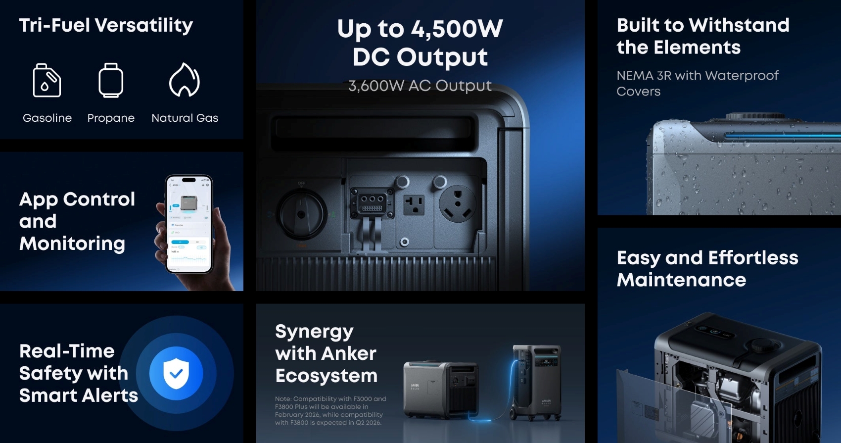 | • | The Anker SOLIX Smart Generator 5500 features a compact, balanced frame, intuitive controls, and easy-to-access ports, making setup, transport, and operation effortless, delivering reliable power without compromising convenience or comfort. |