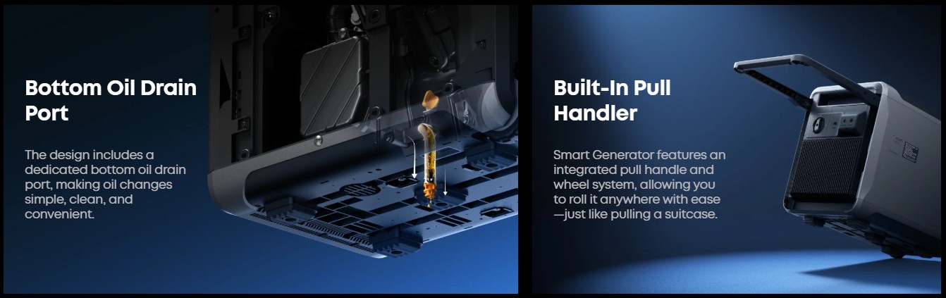 | • | Quiet Mode: Operate your generator at night without disturbing your home or neighbors. Quiet Mode delivers 2kW of low-power output with noise under 65.5 dB, providing peaceful power whenever you need it. |