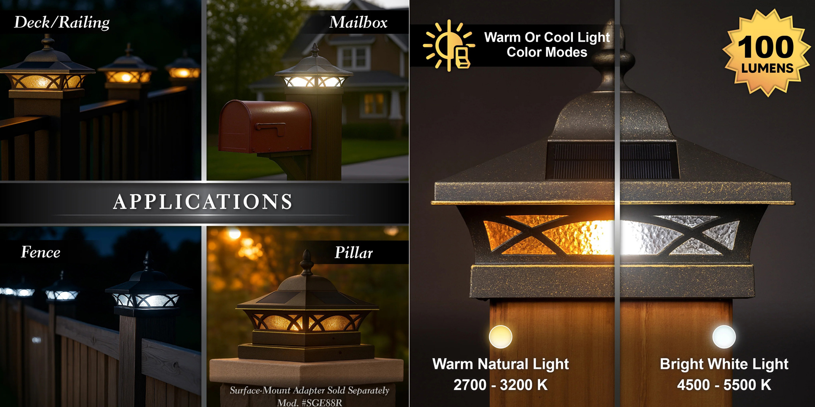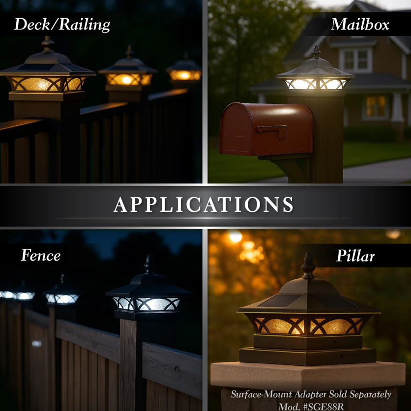 | • | Post Caps are ideal for fences, railings, mailbox posts, docks, and walkways - almost anywhere a soft accent light is desired |
