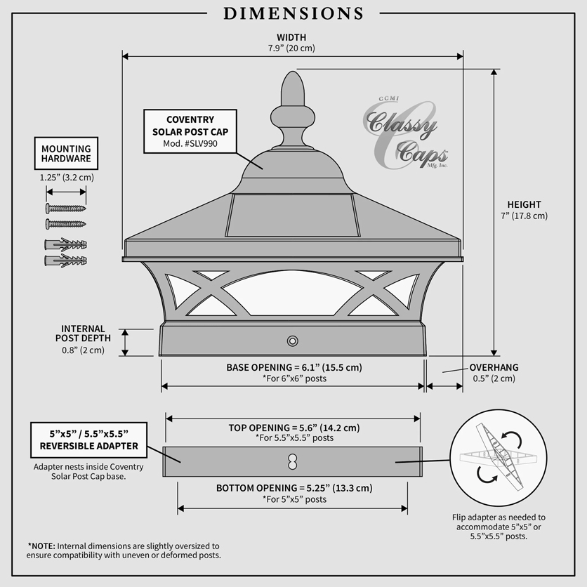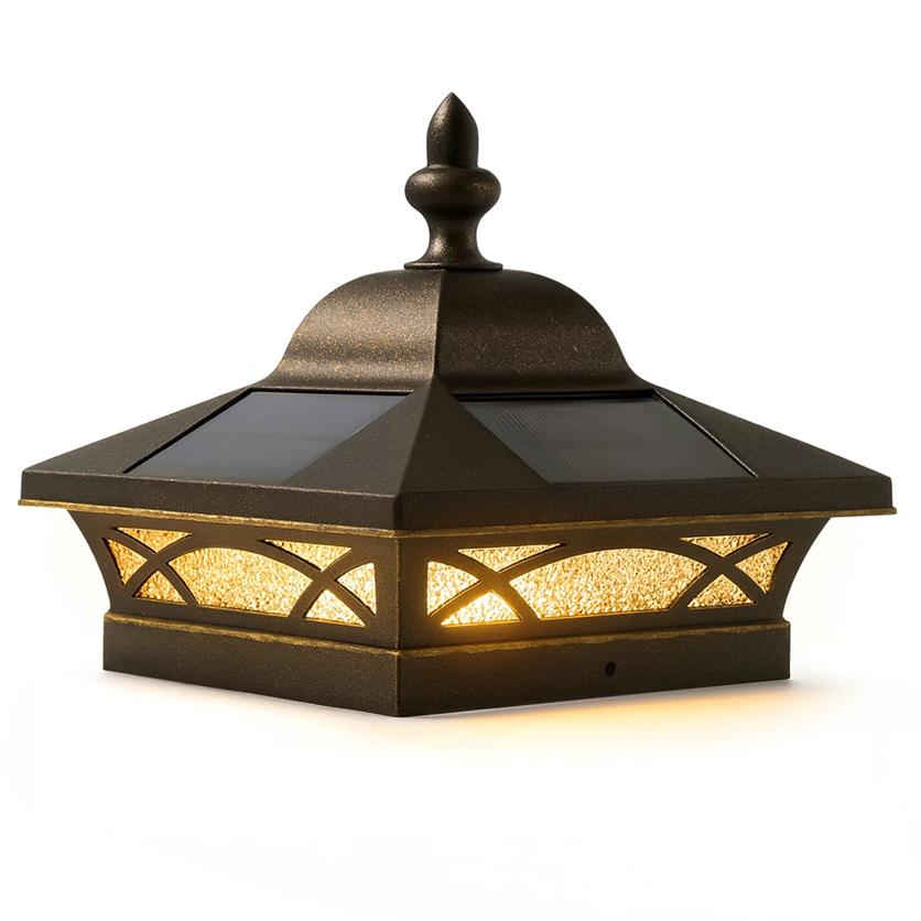 Illuminate your outdoor spaces with the Coventry Solar Post Cap, Classy Caps' brightest solar post cap yet. Inspired by the timeless charm of British architecture, this premium fixture combines style and durability with its unique finial design, heavy-duty cast aluminum construction, real granite glass, and sleek Antique Bronze powder-coated finish.