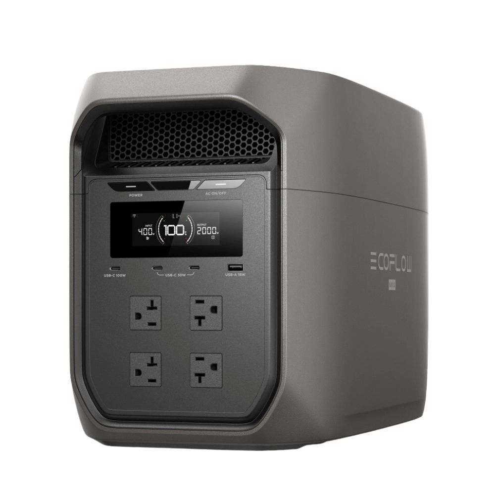 The EcoFlow Delta 3 Max Powerstation in Black is the newest addition to the most reliable line of portable backup power solutions on the market. It delivers a 2400W AC rated output and, with X-Boost 3.0 technology, supports devices up to 3400W. The inverter samples AC voltage and current every 33μs with high precision using a DSP chip, ensuring a pure sine wave output with stability that exceeds typical grid standards, which makes it ideal for reliably powering sensitive electronics. It features 4 charging methods and can recharge from 0 to 80% in just 68 minutes.