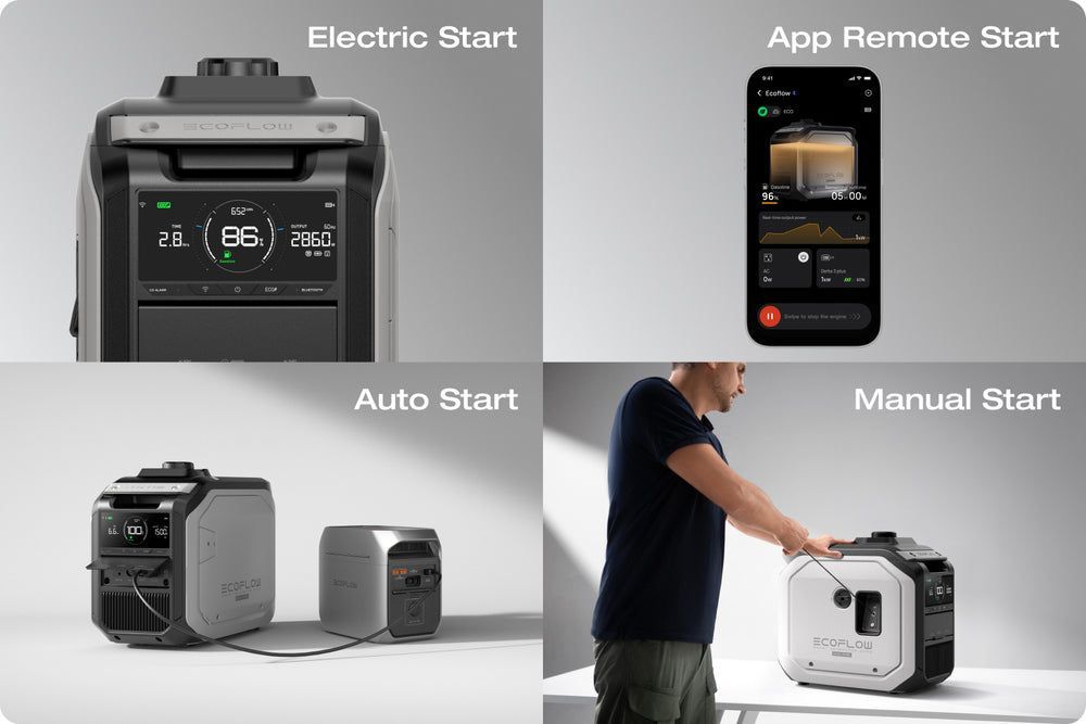 EcoFlow Smart Generator 3000 (Dual Fuel) offers intelligent and elegant start/stop methods for various scenarios, providing greater convenience.