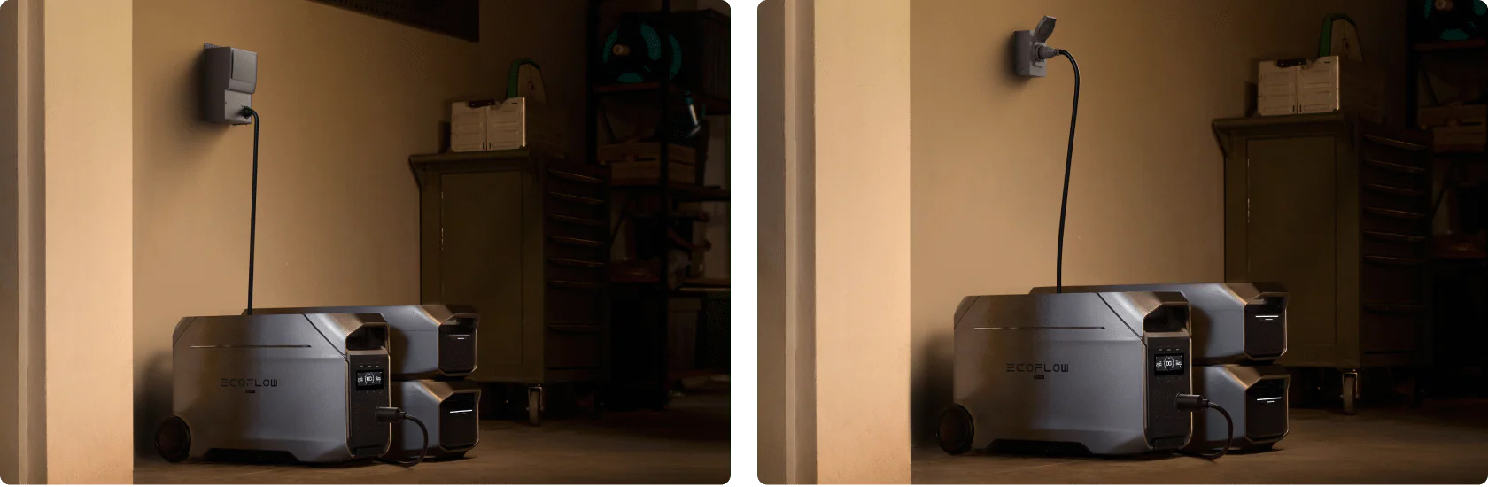 • | Manual Transfer Switch: Switch smoothly between grid and Delta 3 Ultra Plus to meet diverse energy needs, ensuring continuous reliability without interruption. |