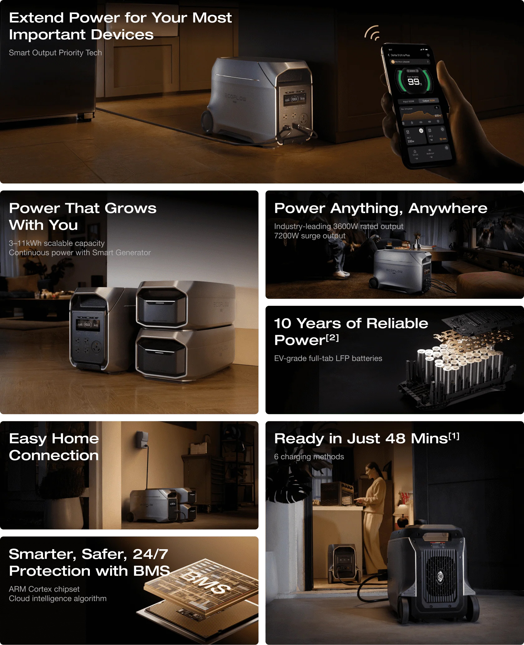 • | From battery chemistry to structural design, Delta 3 Ultra Plus is engineered for extreme durability, environmental resilience, and whisper-quiet performance. |