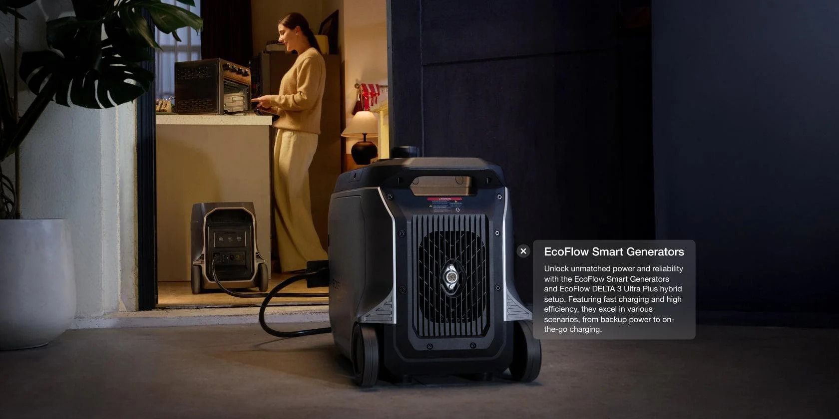 • | Pair Delta 3 Ultra Plus with an EcoFlow Smart Generator to achieve longer runtime, automatically switching between fuel and battery to keep you powered through multi-day outages or off-grid adventure. |