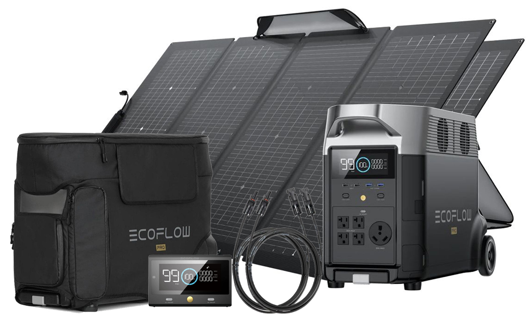 EcoFlow Delta Pro Portable 440W Solar Generator Bundle - With Free Bag, Remote and MC4 Extension Cable