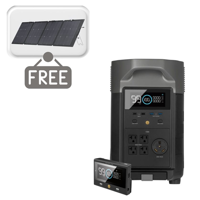 EcoFlow Delta Pro Portable Power Station with Remote Control - Includes a FREE EcoFlow 220W Bifacial Portable Solar Panel