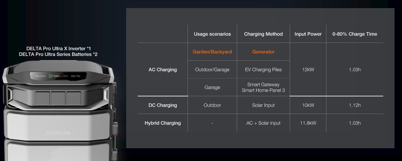 | • | The Delta Pro Ultra X is scalable from one battery of 6kWh, all the way to 30 (sold separately), it multiplies the energy to a gigantic 180kWh. |