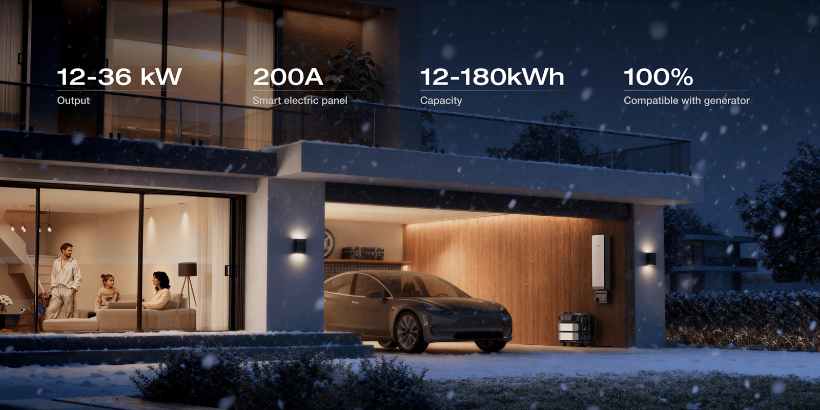 • | Start with 12kWh, Scale instantly to 180kWh with up to 30 plug-in expansion batteries with no tools, no hassle. Power increases with your needs. |