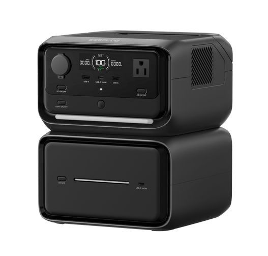 | • | The River 3 Max Plus includes the EB600 (572Wh) expansion battery, for a combined storage of 858 Watt hours, Just stack them to get expanded pure energy. |