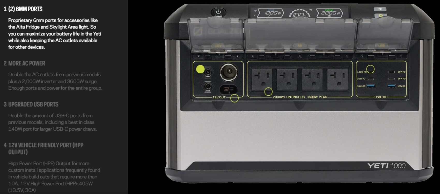 | • | See the simple and effective layout of the Goal Zero New Yeti 1000: |