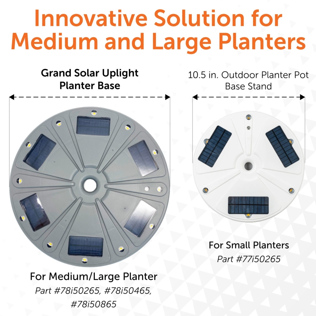 | • | Optimized for Planters Up to 13 inch Wide: Best used with pots 13 inches or smaller for optimal solar exposure. Ensures maximum charging efficiency and performance. This helps maintain bright, reliable lighting every night. |