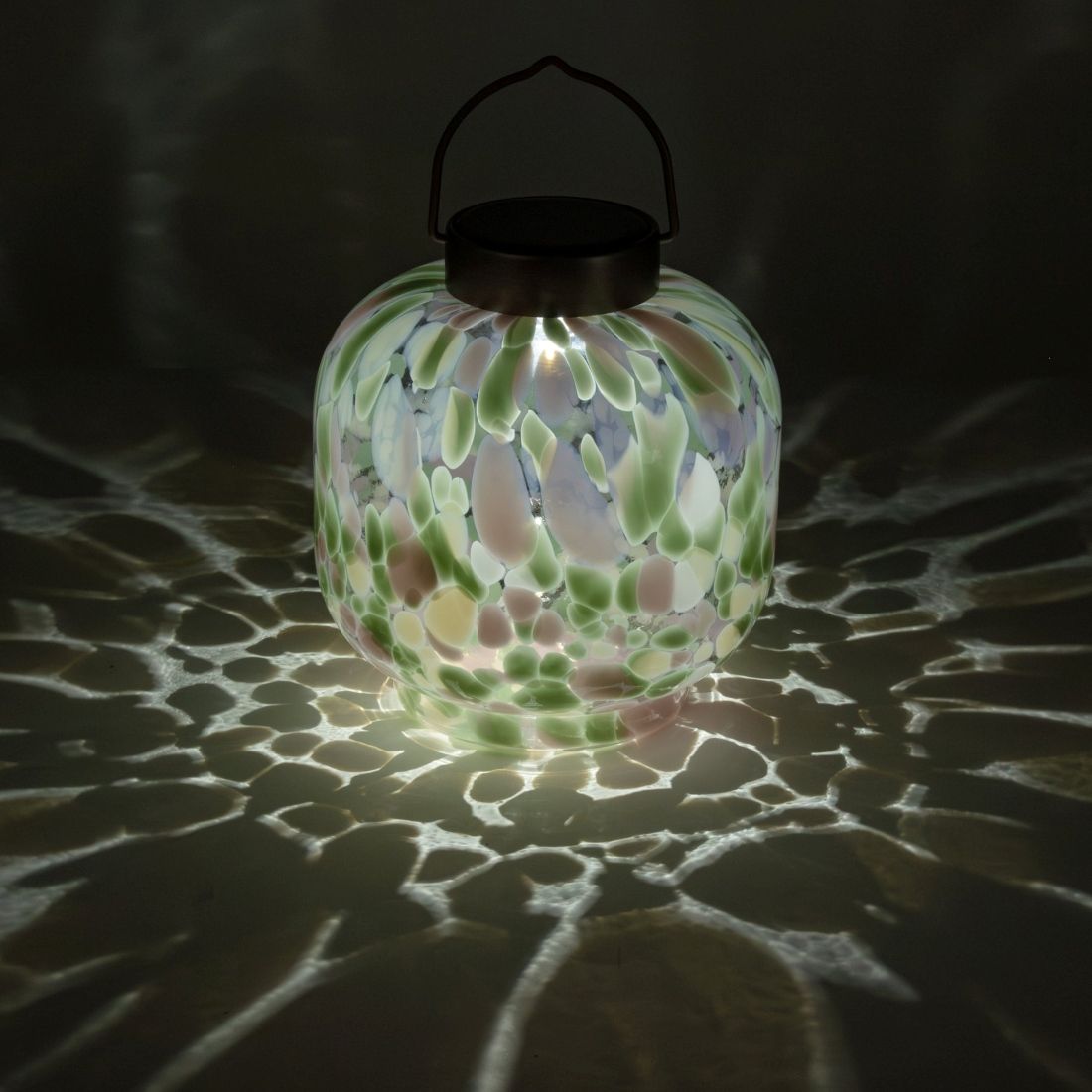 Handblown Glass 8 Inch Cabin Solar Lantern - Summer Garden