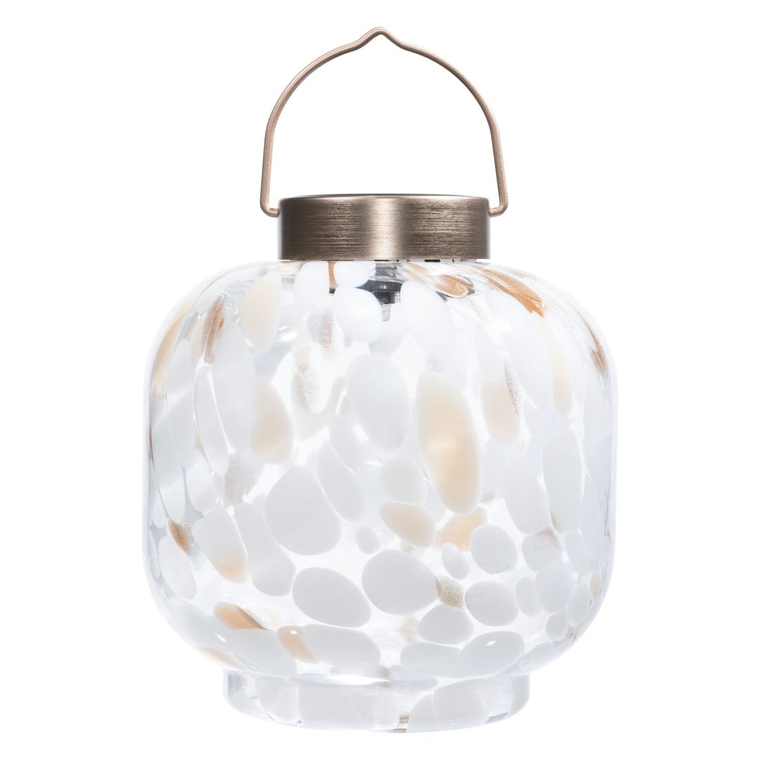 Handblown Glass 8 Inch Cabin Solar Lantern - Toasted Marshmellow
