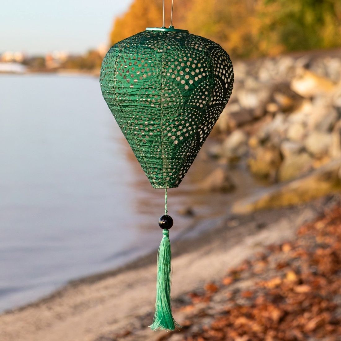 Soji Stella Tassel Balloon Solar Lantern - Jade