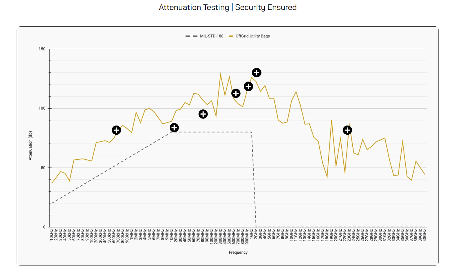 | Average Shielding (w/ Filter): | 10MHz-10GHz: 107.1 dB (Due to size constraints, laptop size tested as worst case typical construction) |